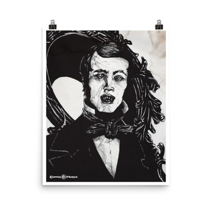 A portrait of Lord Petrifax the Lesser from “The Vampire Factory of Mad Baron Petrifax,” a Dungeons & Dragons gothic horror adventure from CopperHorde. Artwork by Chris Sagovac.